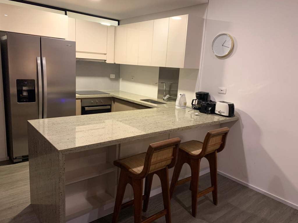 ¡Imagina despertar cada mañana en este acogedor apartamento! Con una habitacion amplia, dos baños para mayor comodidad y un balcón con vista exterior que te permitirá disfrutar de hermosos atardeceres. La cocina tipo americano te brinda un espacio moderno y funcional, mientras que la iluminación natural resalta los detalles del piso laminado. Además, cuenta con garaje independiente y depósito para mayor conveniencia. El edificio ofrece amenidades como gimnasio, piscina, zonas verdes y salón comunal. Con vigilancia privada las 24 horas, te sentirás seguro en todo momento. Su ubicación privilegiada cerca de parques, supermercados y colegios, lo convierte en el lugar ideal para vivir. ¡No dejes pasar esta oportunidad única en el mercado inmobiliario!