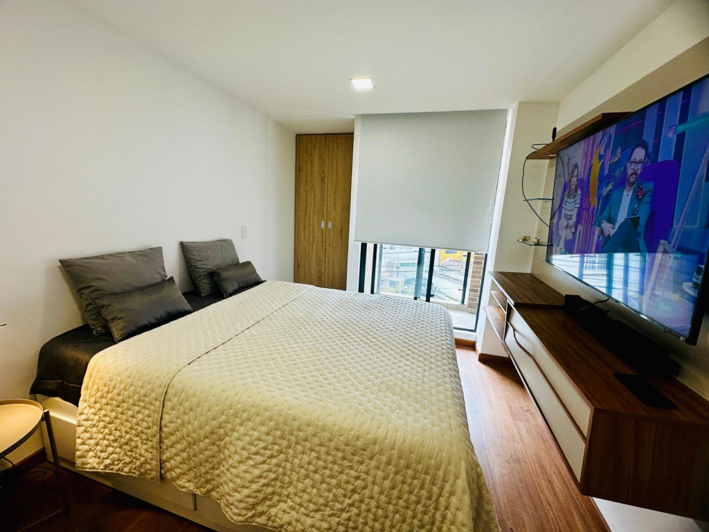 arriendo apartamento amoblado estrenar piso tercero excelente menaje .En el corazón de la vibrante Zona Chapinero, específicamente en el barrio Palermo-Teusaquillo, te arriendo un moderno apartamento de 34 m², diseñado para quienes buscan un espacio funcional y contemporáneo. Este inmueble, estrenar, representa una excelente oportunidad para quienes desean establecerse en una de las zonas más dinámicas de Bogotá, donde la cultura, la gastronomía y la vida nocturna convergen. Su ubicación estratégica no solo ofrece fácil acceso a importantes vías de transporte, ideal para aquellos que consideran la posibilidad de rentar el espacio. Con un estrato 4, el apartamento se sitúa en un entorno que combina comodidad y accesibilidad, brindando la posibilidad de disfrutar de una vida urbana activa sin sacrificar la tranquilidad. Este inmueble no solo es un lugar para vivir, sino una inversión en un estilo de vida que promueve el bienestar y la conexión con la ciudad. Sin duda, es una opción que merece ser considerada para quienes buscan un hogar en un entorno próspero y en constante evolución consta de una alcoba iluminada con balcon - un baño- zona de lavanderia - un garaje cubierto .AMOBLADO TOTALMENTE $3.000.000 INCLUYE CUOTA DE ADMON